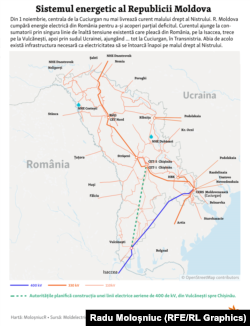 Dar din cauza racordării rețelelor electrice ucrainene și moldovene cu cea europeană, R. Moldova poate primi masiv curent din România, fără să mai fie nevoie să construiască stații costisitoare de transformare a curentului românesc importat.