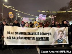 Pancartele afișează mesaje similare cu cele din serile precedente: „Când Savonea salvează corupţii, noi salvăm Justiţia! Revocare”, „Savonea, ruşinea Curţii Supreme! Revocare pentru credibilitate!”, „Justiţie, nu corupţie”.
