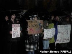 Peste 150 de tineri și foarte tineri s-au adunat vineri seară în Piața Universității, într-un protest de conștientizare a ceea ce reprezintă Călin Georgescu, candidatul suveranist prorus care a ieșit pe primul loc în primul tur al alegerilor prezidențiale în urma unei campanii controversate pe TikTok, dar și față de decizia Curții Constituționale de a relua numărarea voturilor din primul tur de scrutin.