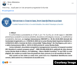 În finalul postării e preluată o declarație a ministrului Bode, făcută după anunțul Consiliului Național de Etică.