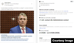 - Și mai diferă și suma investită în reclamă. Știrideazi și Online Report au plătit între 2.000 și 2.500 de lei, iar Stiri365 între 1.000 și 1.500 de lei. Toate postările plătite sunt încă active;