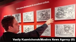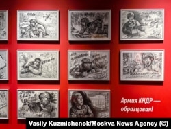 La Moscova s-a deschis o expoziție de artă propagandistică nord-coreeană, care prezintă ilustrații grafice ale soldaților ucraineni împușcați mortal.