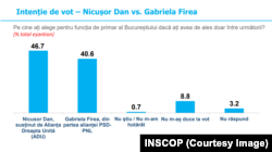 Nicușor Dan - Gabriela Firea, 46,7% la 40,6%