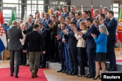 El le-a mulțumit liderilor UE pentru sprijinul acordat în contracararea invaziei Rusiei, dar i-a îndemnat să furnizeze și mai multe arme, inclusiv avioane de luptă.