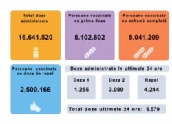 Potrivit datelor puse la dispoziția Comitetului Național de Coordonare a Activităților privind Vaccinarea împotriva Covid (CNCAV) de către Institutul Național de Sănătate Publică (INSP), care ține evidența vaccinărilor, situația din ziua de 18 februarie este următoarea: