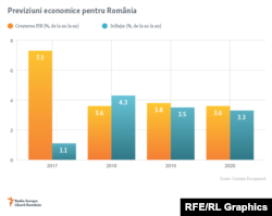 De altfel, în ceea ce privește inflația, raportul Comisiei Europene menționează pentru 2018, o rată estimată la 4,3%. „Pentru 2019 și 2020, rata inflației ar urma să scadă la 3,5% și respectiv 3,3% pe fondul slăbirii cererii interne”. Iar, din acest punct de vedere, România este, din nou, la extreme. Dacă în 2017, a înregistrat cel mai mic nivel al inflației de la nivelul întregii UE, de doar 1,2%, cu o rată a inflației de peste 4% se îndreaptă spre vârful plutonului UE.