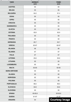 România se află în linie cu alte țări europene, unde vârsta legală este de 65 de ani în medie, iar tendința este de creștere a acestei vârste.