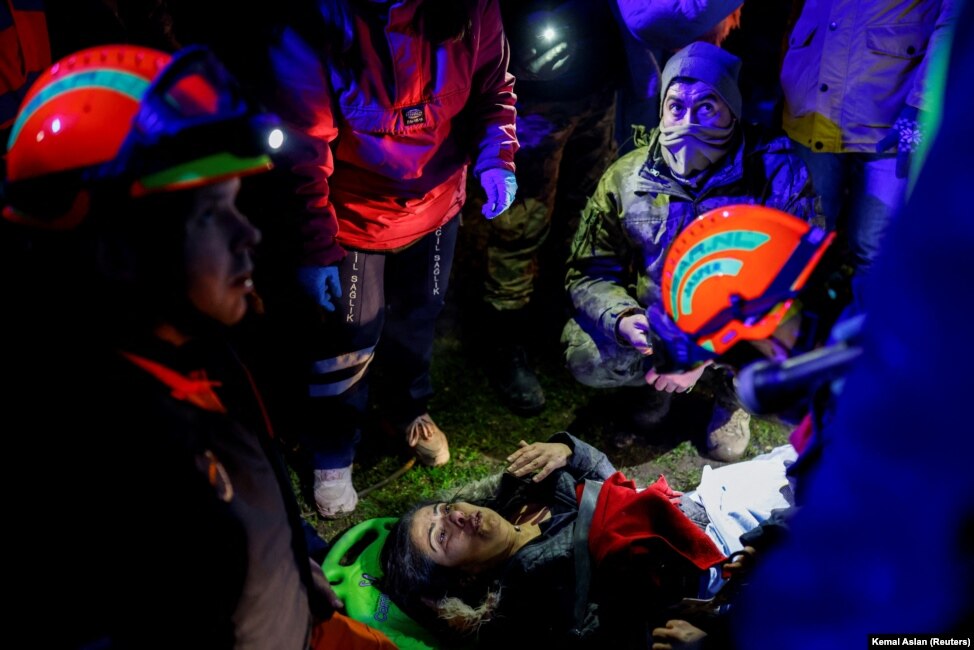 O echipă olandeză participă la salvarea unei turce din dărâmături în urma unui cutremur din Hatay, Turcia, 8 februarie 2023. REUTERS/Kemal Aslan