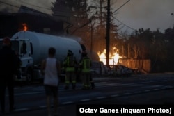 Actualizare - Pompierii nu se pot apropia de stația GPL pentru a stinge incendiul, iar în primă instanță un robot pentru stingerea incendiilor a fost trimis înaintea lor.