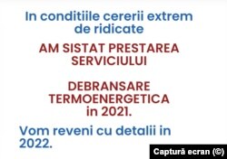 „Am început să caut la începutul lui iunie, am mers direct la o firmă recomandată de un prieten. Mi-au zis să mai încerc peste trei săptămâni. Am revenit și mi-au zis că nu mai iau dosare noi sezonul ăsta pentru că au multe dosare și le va fi greu să le finalizeze chiar și pe acelea până în 31 august, data limită de depunere la Termoenergetica”, povestește Bogdan pentru Europa Liberă. Apoi a mai încercat la aproape 10 firme și toate l-au refuzat. În unele cazuri nici nu mai e nevoie de telefon. Firmele anunță pe paginile de internet sistarea debranșărilor.