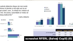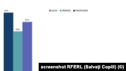 Deficitul de competențe necesare învățământului online este similar, 28%, la nivelul tuturor partenerilor educaționali, cu 5% mai scăzut în rural decât în urban și cu 23% mai scăzut în cazul educației preșcolare decât liceale, mai arată studiul amintit.