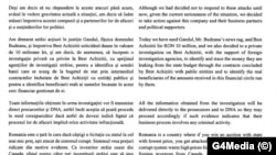 „România este o țară în care dacă câștigi o licitație cu statul la cel mai mic preț, ești atacata de sistemul corupt. Sistemul vrea prețuri ridicate din motive evidente. Ca orice investitor străin onest din Canada, sfatul nostru către toți investitorii străini este să stea departe, nu merită”, se spune în scrisoarea citată.