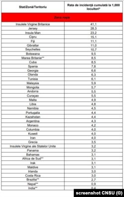 Decizia ca lista să intre în vigoare abia de duminică, 1 august, a fost luată pentru a nu afecta cetățenii români care se întorc în țară în acest sfârșit de săptămână, transmite CNSU.