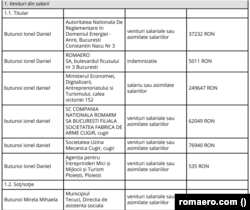 În 2024, pentru anul anterior, Butunoi a declarat venituri din șase surse, toate din bugetul statului - în total, peste 431.000 de lei. Și soția lui Butunoiu lucrează tot la stat și a câștigat 144.000 de lei în 2023.