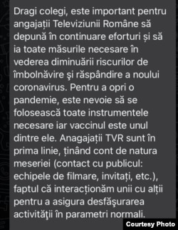 În privința campaniei de vaccinare însă, lucrurile sunt mult mai clare. Toți angajații TVR se pot înscrie pentru vaccinare, prin departamentele lor: