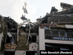 Pompierii au stins un incendiu într-o clădire rezidențială de nouă etaje grav avariată din districtul central Șevcenkivski, au declarat serviciile de urgență. Resturile au fost presărate peste mașinile parcate în afara unei clădiri care mocnea, cu un crater pe acoperiș.