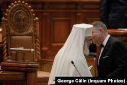 Klaus Iohannis a citit jurământul oficial. Patriarhul Daniel citește o binecuvântare a acestei învestituri, de la tribuna Parlamentului.