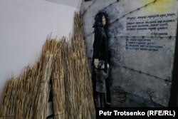 Când reporterii RFE/RL au ajuns în fața muzeului din satul Aqmol, trei muncitori încercau să atârne pe un panou de pe stradă un banner nou cu textul „Muzeul și Complexul Memorial ALZHIR”. Vântul le era potrivnic: bannerul se bâțâia, la fel și scara de metal pe care se urcase unul dintre muncitori.