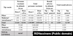 Număr total de reacții adverse înregistrate la nivelul centrelor de vaccinare (începând din 27 decembrie 2020): 14.278 reacții comune și minore (2,6/1000 doze administrate), dintre care: