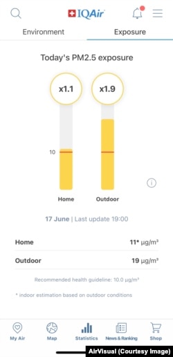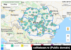 Datele Rețelei Naționale de Monitorizare a Calității Aerului se regăsesc în aplicația AirVisual. Iată situația particulelor de suspensie fine prezentată de această aplicație pentru seara de 17 iunie.