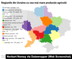 Spre exemplu, regiunea Harkov, care a produs în perioada 2016-2020 între 1.501-2.300 de tone metrice de grâu (8% din totalul de grâu al țării) și 1.001-1.400 de tone metrice de semințe de floarea soarelui (10% din totalul de semințe de floarea soarelui a țării) este una dintre cele mai atacate de forțele armatei Rusiei de la începutul războiului ordonat de Vladimir Putin până acum.