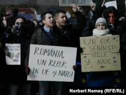 La Timișoara, tinerii au scandat „Azi în Timișoara / Mâine în toată țara”, mesaj simbol al Revoluției din decembrie 1989, care a început la Timișoara.