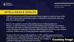 Rusia are probleme în asigurarea serviciilor publice de bază pentru populația din teritoriile ocupate din estul Ucrainei, potrivit Ministerului britanic al Apărării. În lipsa medicamentelor, în Mariupol există riscul izbucnirii unei epidemii de holeră de proporții. Serviciile medicale sunt aproape de colaps în Mariupol, atrage atenția ministerul britanic.