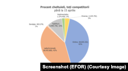 În total, competitorii au cheltuit 67,7 de milioane față de 13,7 milioane de lei, cât declaraseră în prima săptămână, respectiv 47 de milioane de lei, cât au declarat în prima săptămâna de la alegerile de anul trecut.