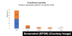 Valoarea totală a transferurilor de fonduri colectate de partide a ajuns la 44,7 milioane de lei, față de 25,2 milioane de lei cât a fost la prima raportare.