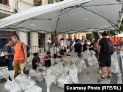 Zeci de oameni care au lucrat în sectiile de votare din Sectorul 1 al Bucureștiului stau ore în șir la coadă sa predea buletinele de vot.