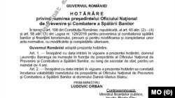 El a fost numit în septembrie curent la șefia combaterii spălării banilor.