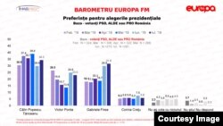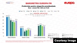 Ierarhia la prezidențiale este continuată de Victor Ponta cu 12,9% ( în ușoară scădere față de iunie), Dacian Cioloș- 10,4% și Dan Barna- 9,4%.