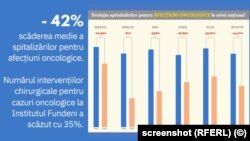 - între -35% și -79% pentru Institutul Clinic Fundeni, care înregistrează reduceri semnificative inclusiv în numărul intervențiilor chirurgicale pentru pacienții oncologici,