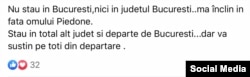 Postarea, care a strâns aproape 700 de aprecieri și 100 de comentarii nu este singura de acest fel. Și alți membri ai grupului și-au arătat susținerea pentru Vlad Piedone, în postări care au adunat la fel de multe aprecieri.