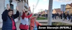 Studenții care treceau pe lângă cetățenii din Batajnica au strigat „Vă mulțumim pentru sprijin” și i-au invitat pe localnici să li se alăture.