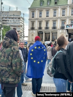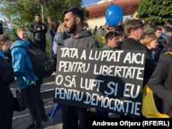 „Europe, we belong” scrie pe afișele din București. Pe traseul de la Universitate la Piața Victoriei, manifestanții au mers în liniște.
