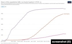 În Regatul Unit, aproximativ 86% dintre adulți au primit prima lor doză de vaccin iar 63% au fost vaccinați și cu a doua doză, permițând ieșirea treptată din carantina impusă în ianuarie.